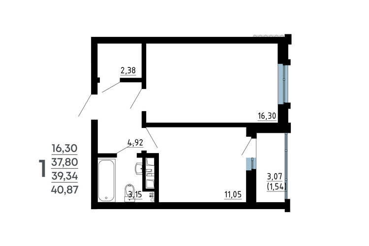 1-комнатная квартира, 39.34 м² №67