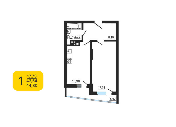 1-комнатная квартира, 44.8 м² №108